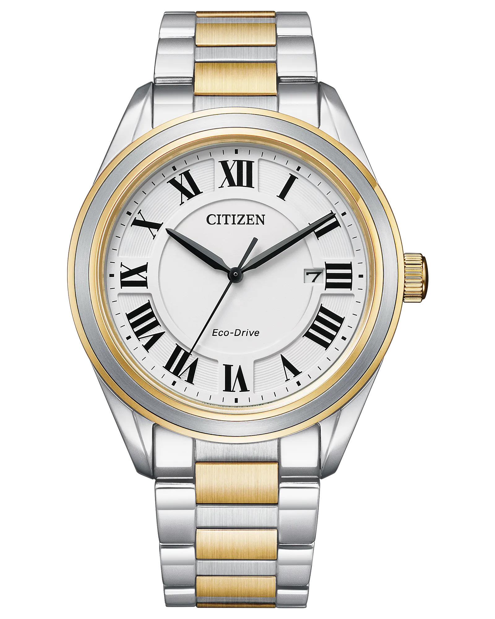 La montre homme bicolore Fiore est une interprétation moderne d'un style classique. Elle est dotée d'un bracelet bicolore et d'un cadran blanc orné de chiffres romains noirs audacieux. Cette montre à trois aiguilles affiche également la date.Alimentée durablement par la lumière grâce à la technologie Eco-Drive de CITIZEN, cette montre unique allie à la perfection modernité et détails classiques pour devenir un incontournable de chaque collection.