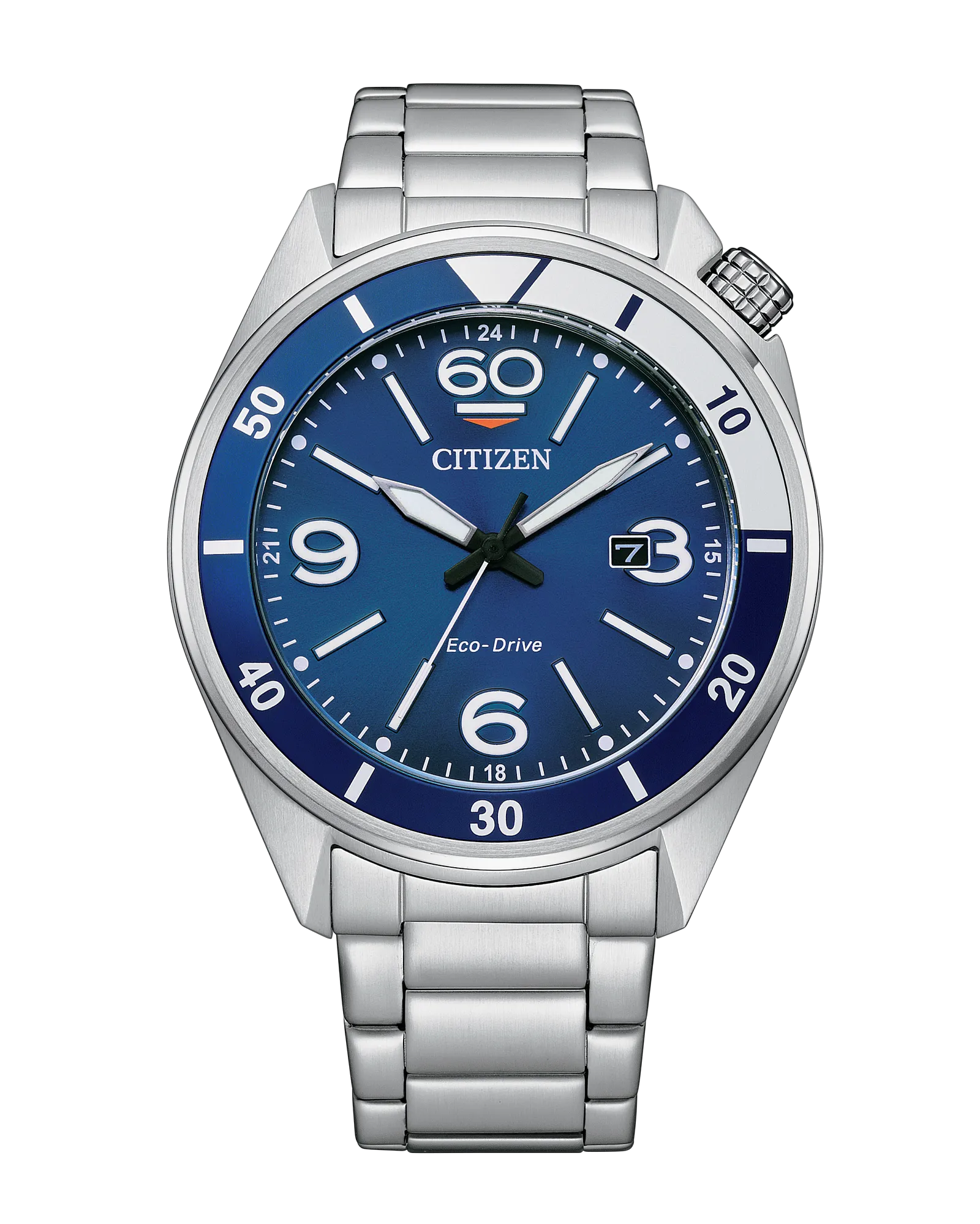 Ce modèle Sport Luxury à 3 aiguilles est doté d'un boîtier et d'un bracelet en acier inoxydable, ainsi que d'un élégant cadran bleu agrémenté d'aiguilles et d'index luminescents et d'un affichage de la date. Il est équipé de notre technologie Eco-Drive : alimentée par la lumière, quelle que soit la lumière.N'a jamais besoin de batterie.