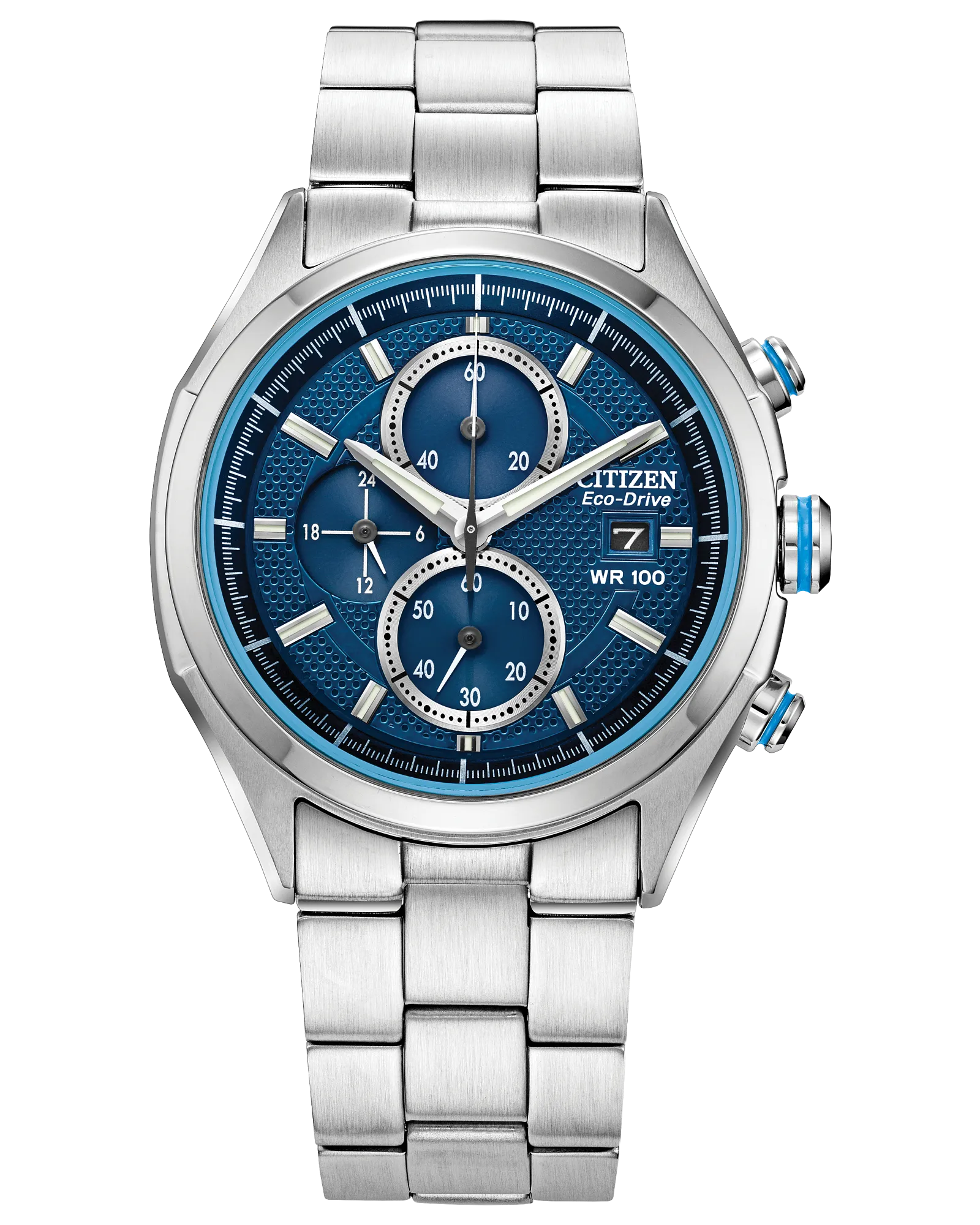 Avec son style moderne et ses touches de couleurs audacieuses, la montre DRIVE de CITIZEN® est la montre idéale pour l'homme moderne. Grâce à la technologie Eco-Drive, elle fonctionne à la lumière, quelle qu'elle soit, et ne nécessite aucune pile. Elle est également dotée d'un chronographe 12/24.Heure et date. Le bracelet en acier inoxydable est associé à un boîtier de 41 mm en acier inoxydable et à un cadran bleu, pour un look sportif qui s'adapte à tous les poignets.